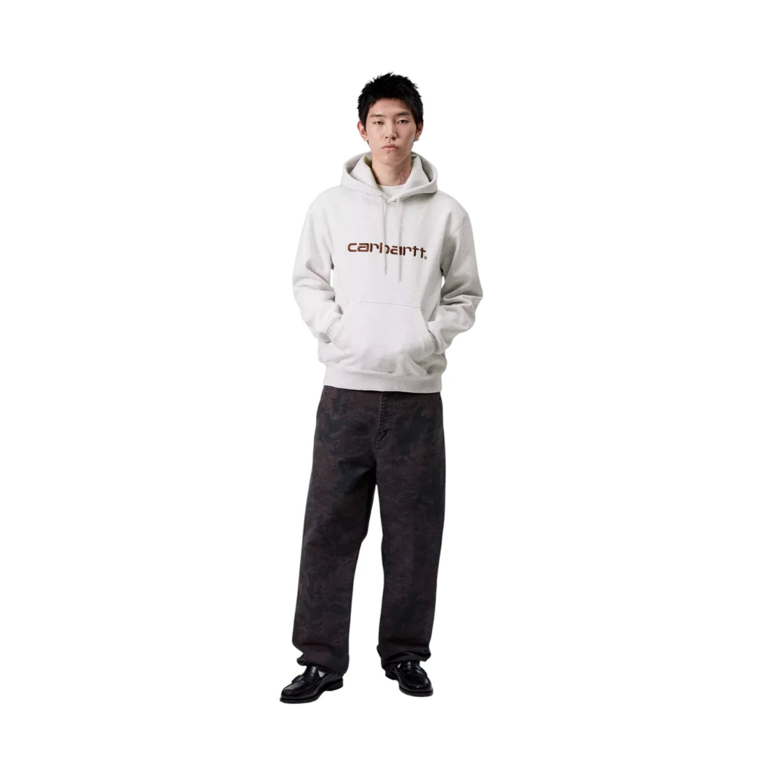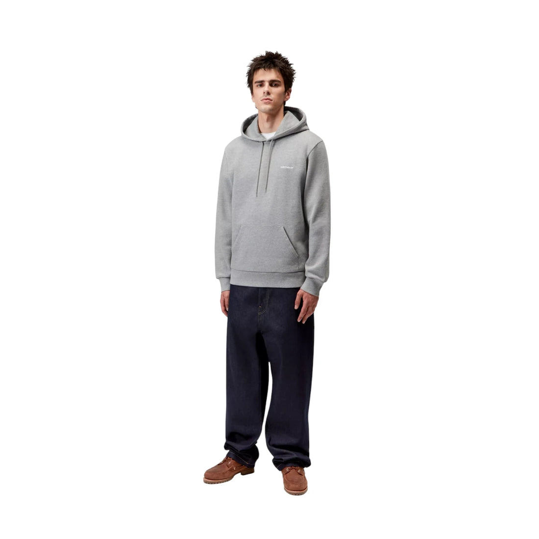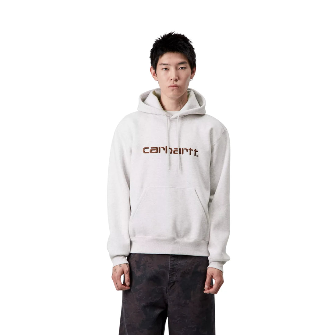 Carhartt Wip Hooded Script Embroidery Sweat - Grey Heather / White