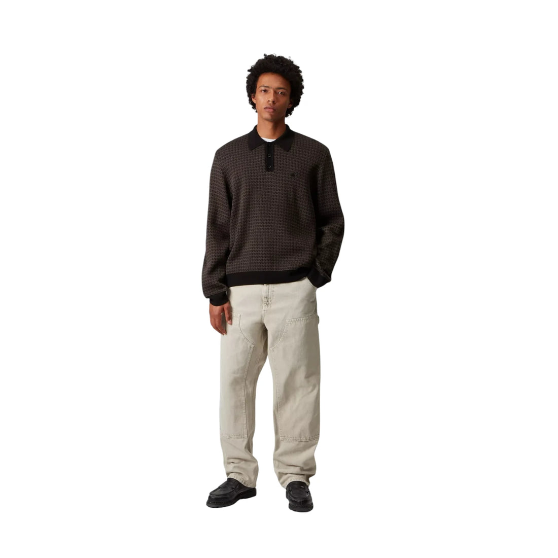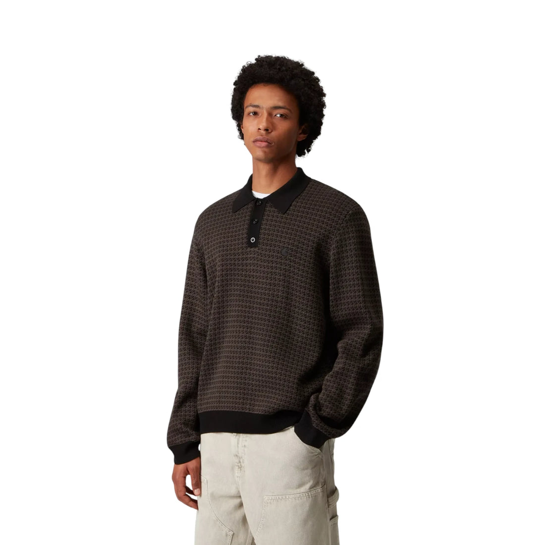 Carhartt Wip L/S Lowis Polo - Lowis Houndstooth, Vitola Heather